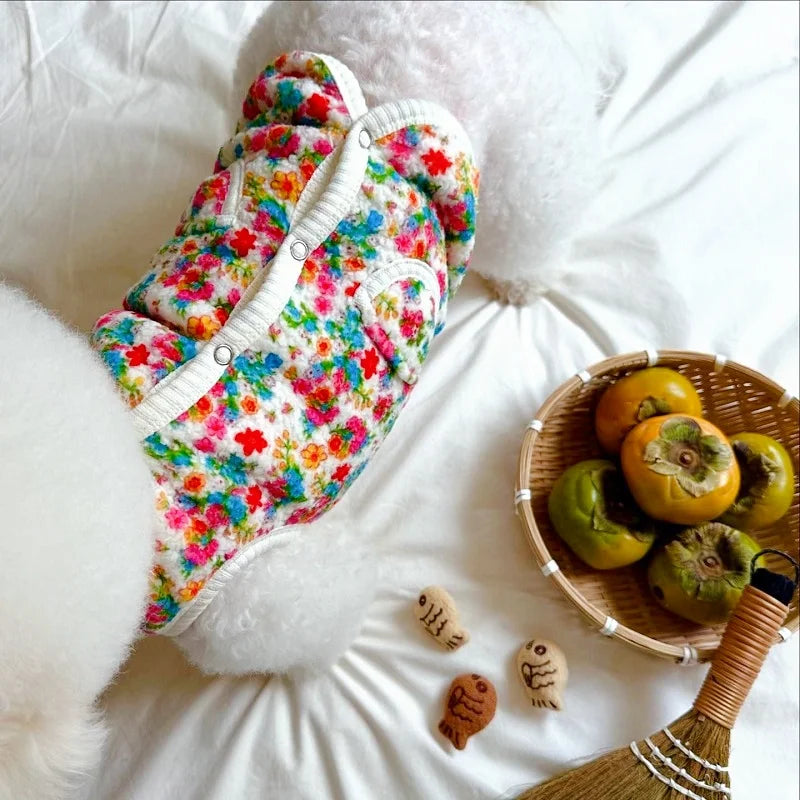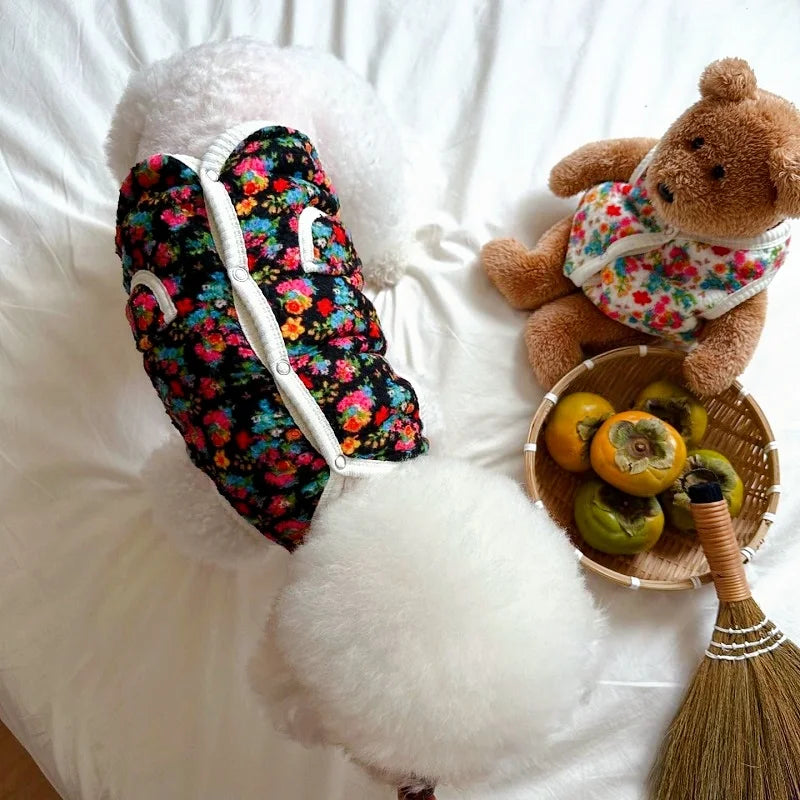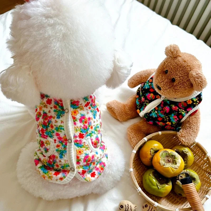 Warm Pet Vest Coat Floral Print Fleece Vest Chiuahua Yorkshire Thick Coat for Small Medium Dog Two-legged Clothes Pet Costume