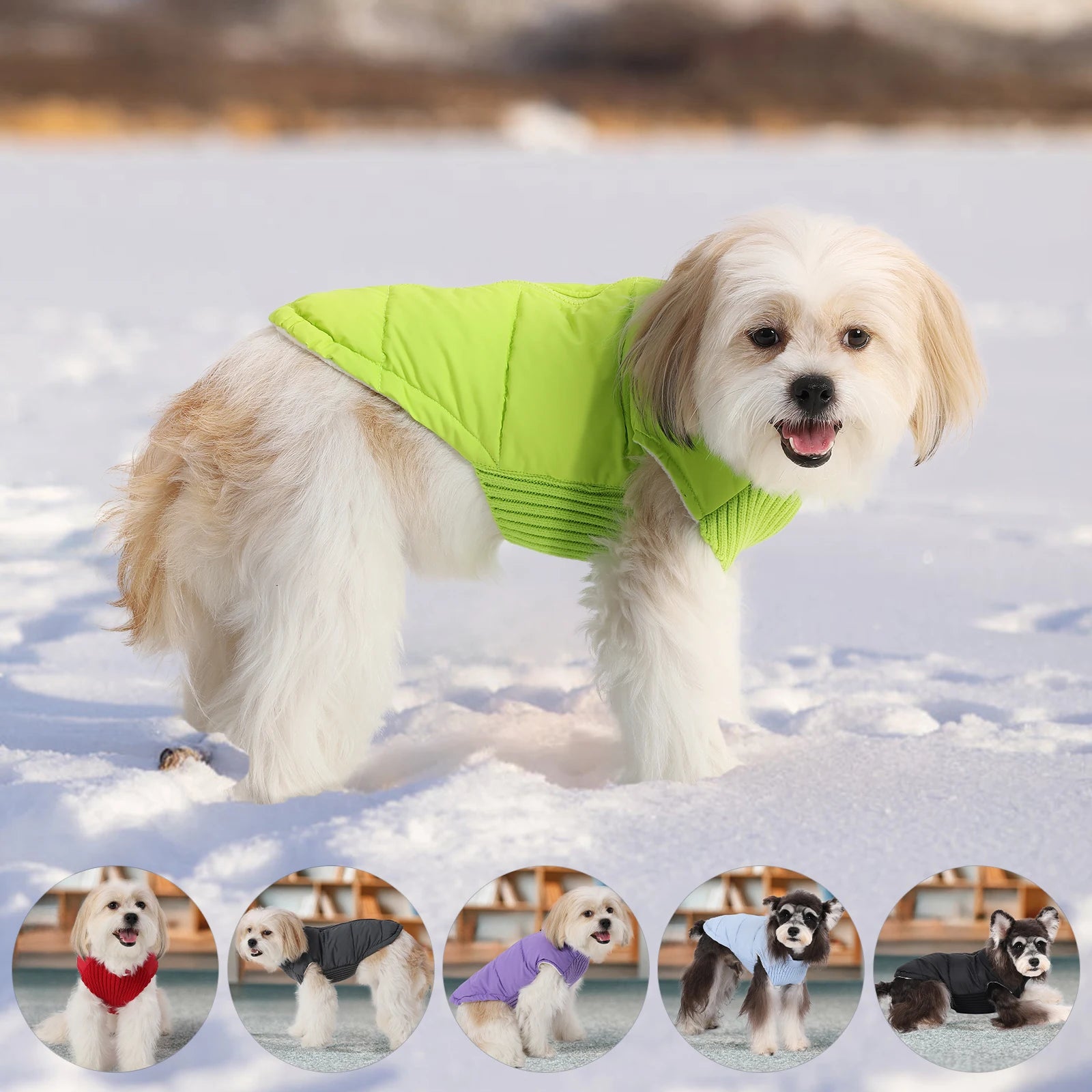 A warm, windproof winter dog jacket designed for small and medium dogs, offering comfort, insulation, and cold-weather protection from Dog Paw Clothing.