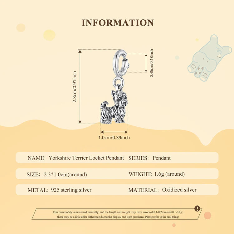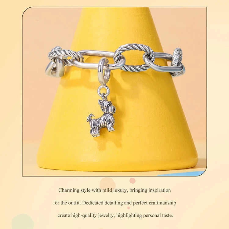 WOSTU 925 Sterling Silver Pet Dog Charm Pomeranian Pendant Yorkshire Terrier Locket Cute Original Fit for Women Bracelet DIY