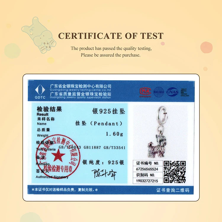 Certificate Number: 925 Sterling Silver Pet Dog Charm